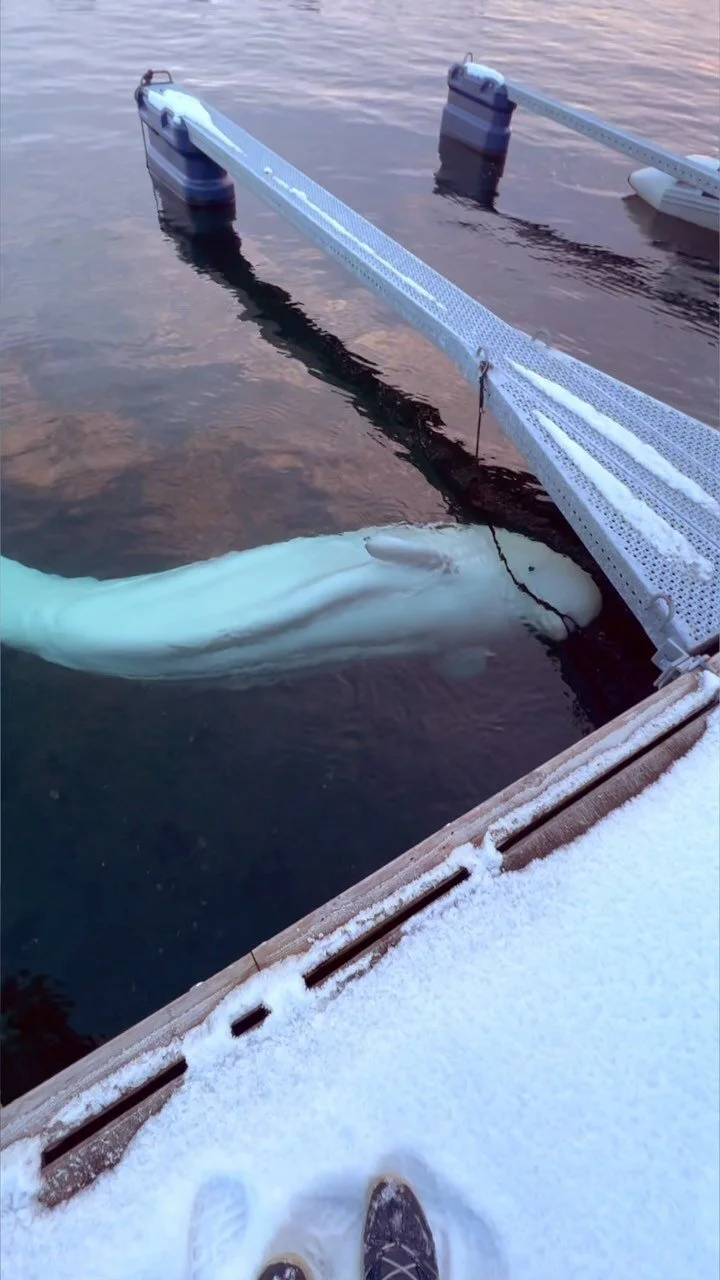 Viral video of Hvaldimir returning a phone that dfropped in the water.