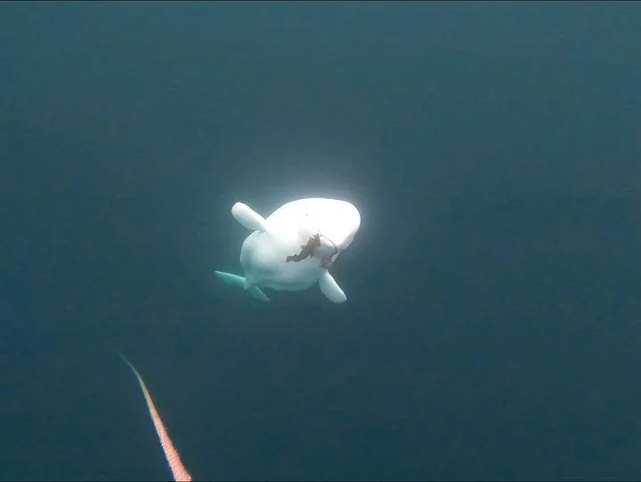 While the threats he faced were very real, our field team had observed resilience and adaptability by Hvaldimir. Cetaceans (whales, dolphins, and porpoises) are very intelligent animals, capable of adapting to a variety of environmental situations. The majority of significant injuries sustained by Hvaldimir happened when he first arrived in Norway, this could be a sign he was learning from negative experience and this has potentially resulted in behavioral adaptations.